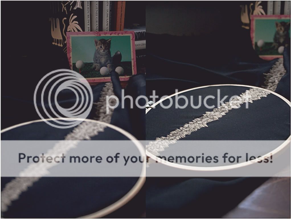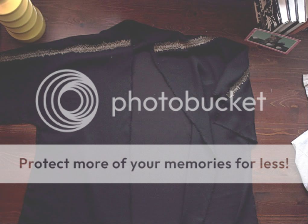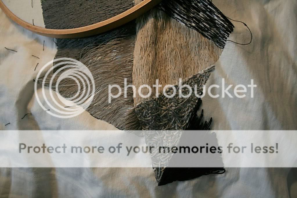 This blouse will, eventually, be almost entirely covered by two different styles of embroidery. The first technique is this stripe-ish bronze seam, and the other is a black chaotic non-pattern that will cover most of the shirt in varying thickness. Some parts will be left clean to show the transparency and lightness of the fabric itself.