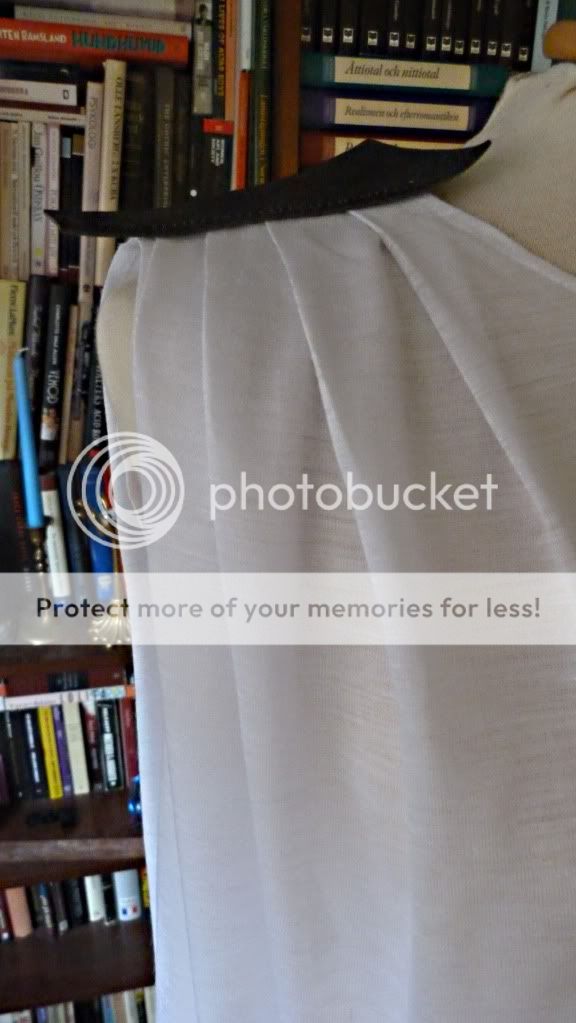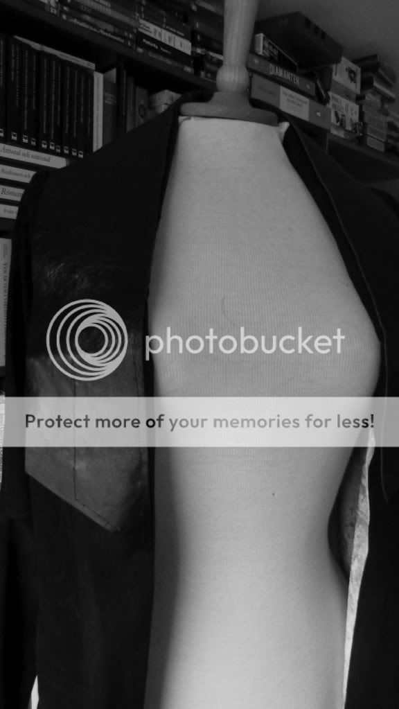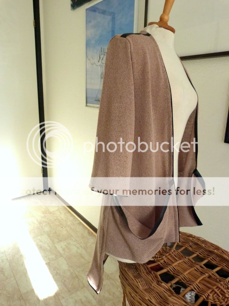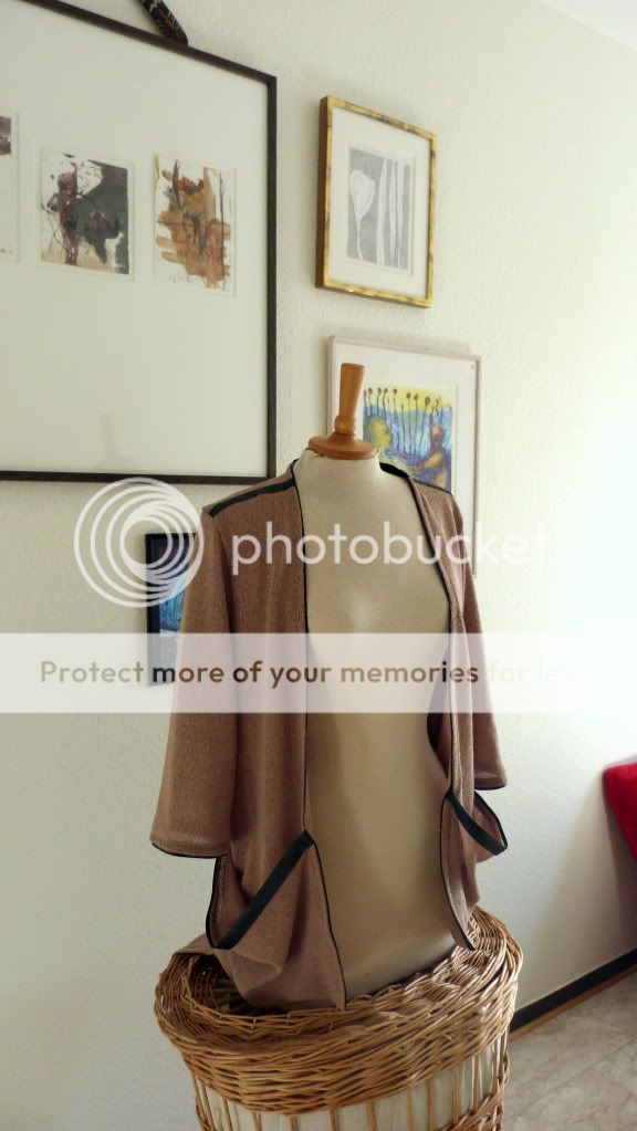 Blev nyss färdig med denna koftan som jag tänkt på väldigt länge nu. Jag hittade det mjuka, grovt stickade tyget i stuvhörnan på Stoff och Stil. Tanken var att genom att förstärka kanterna med stelare band förhöja den flödande effekten av tyget och samtidigt ge koftan ett stramare intryck.
